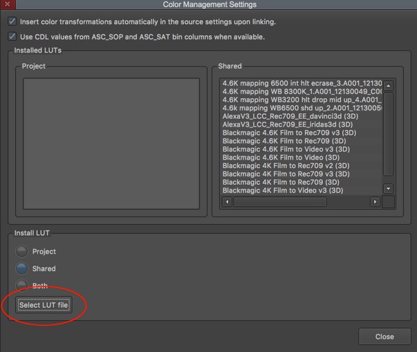 •Appuyer sur le bouton Select LUT file pour choisir la LUT appropriée :